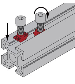 T型螺母是常用的工業(yè)鋁型材緊固連接配件之一,它的優(yōu)點(diǎn)在于使用便捷,不需要預(yù)先置入型材槽內(nèi),可以直接將T型螺母放入固定點(diǎn)然后旋轉(zhuǎn)即可將T型螺母固定于型材槽內(nèi),而后利用相應(yīng)規(guī)格的緊固螺栓即可實(shí)現(xiàn)鋁型材框架快速連接組裝; |